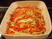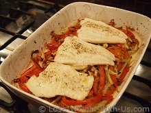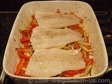 This colorful, simple and delicious baked cod recipe will make a perfect dinner all the family will enjoy. Cod fish fillets are baked with bell peppers, tomatoes, fennel and onions, which turn out juicy and flavorful every time. My husband thinks that this is simply the best baked cod fillet recipe. You can substitute cod for any other white fish. There is a little preparation work involved such as cutting vegetables. The baked cod recipe contains 357 calories and 10g of net carbs per one serving.
