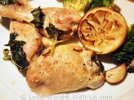 This basil and lemon baked chicken thigh recipe is excellent for a Sunday roast and is also quick enough for dinner after a busy day at work. Chicken thighs are the most flavorful part of the chicken and a real treat for our taste buds. Oven baked lemon chicken goes well with romaine lettuce or steamed broccoli, garnishing with 1 cup of shredded lettuce will add 8 calories and 0.3g of net carbs; 1 cup of steamed broccoli adds 55 calories and 6g of net carbs accordingly. This recipe contains 350 calories and 3g of net carbs per serving.